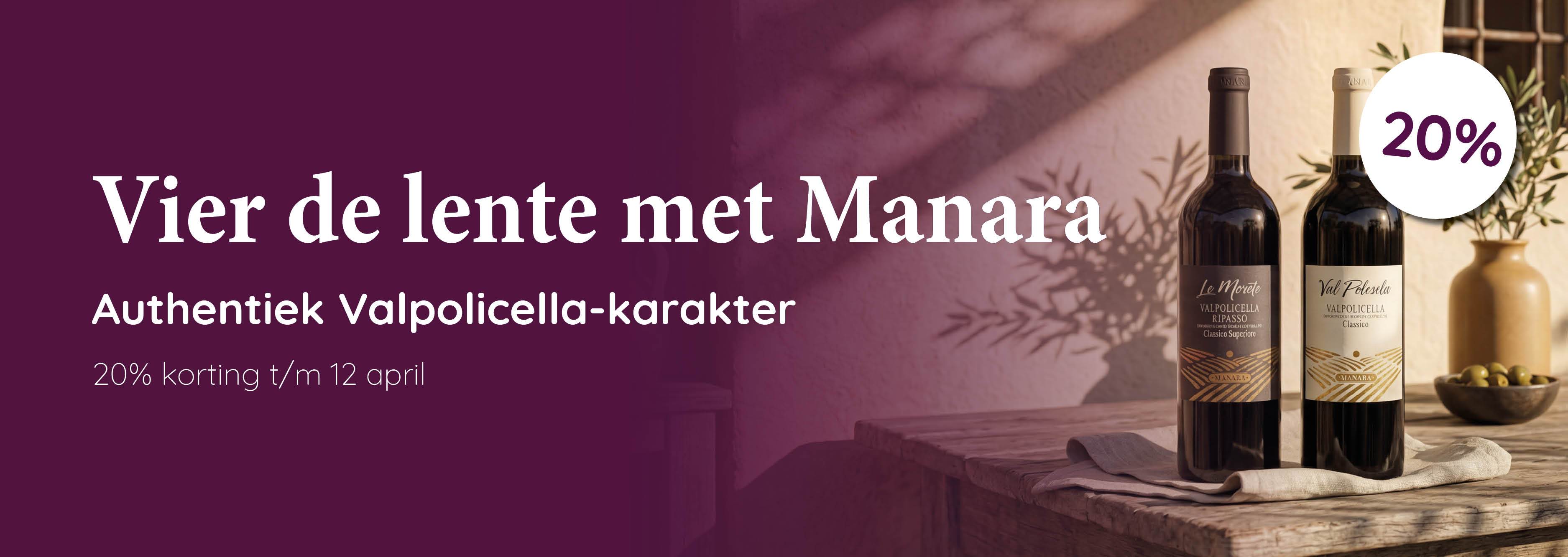 Manara is een familiebedrijf, gevestigd in het hart van Valpolicella Classico, waar al sinds 1950 met aandacht voor herkomst en balans wordt gewerkt. De heuvels van Veneto vormen het decor voor wijnen die onder liefhebbers geliefd zijn om hun souplesse doordrinkbaarheid. Met Manara brengen we twee stijlen samen die elkaar mooi aanvullen: verfijnd en toegankelijk.